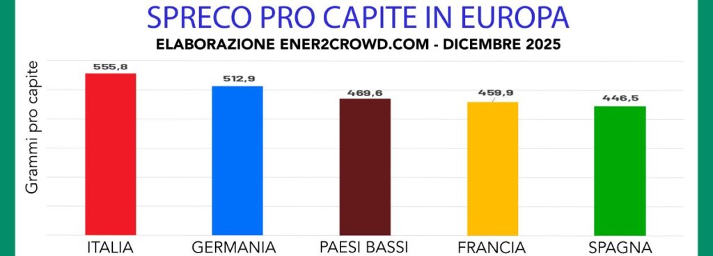 Ener2Crowd: «La riduzione c’è, ma non basta: serve una svolta nell’economia circolare domestica e aziendale, perché ogni tonnellata di rifiuti alimentari produce 4,5 tonnellate di CO2».