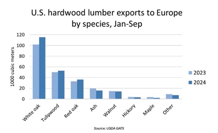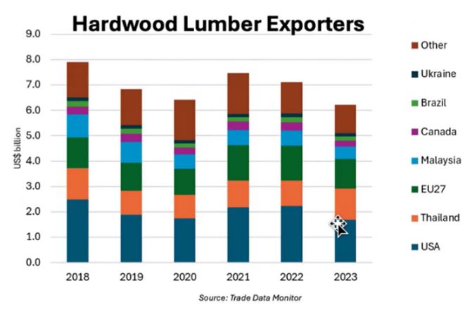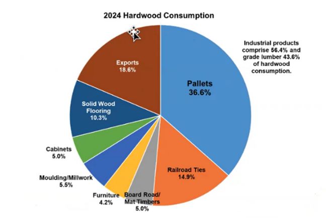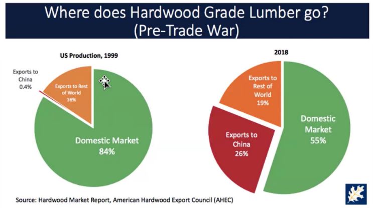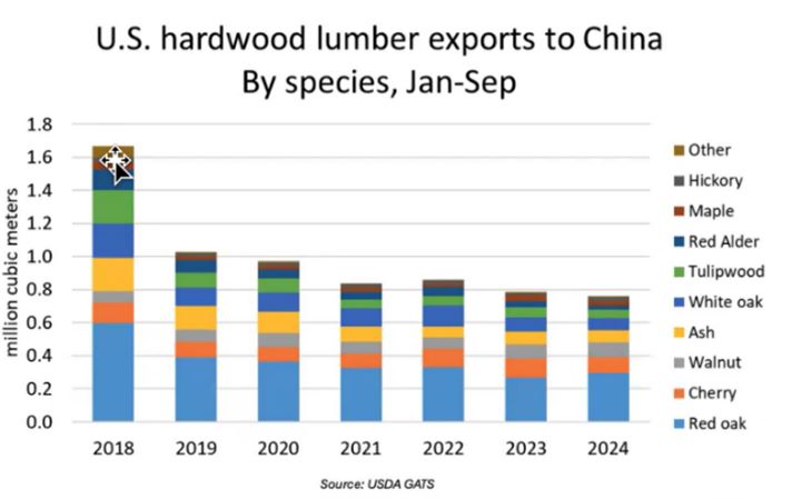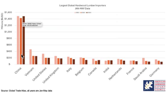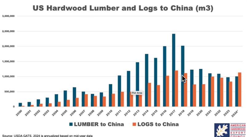 La Cina rimane il principale importatore mondiale di legno di latifoglia dagli Stati Uniti con volumi 3-4 volte superiori a quelli dei mercati secondari.