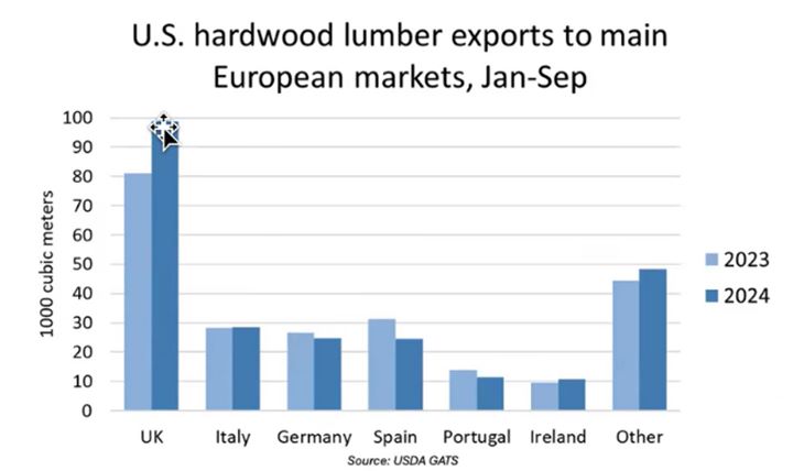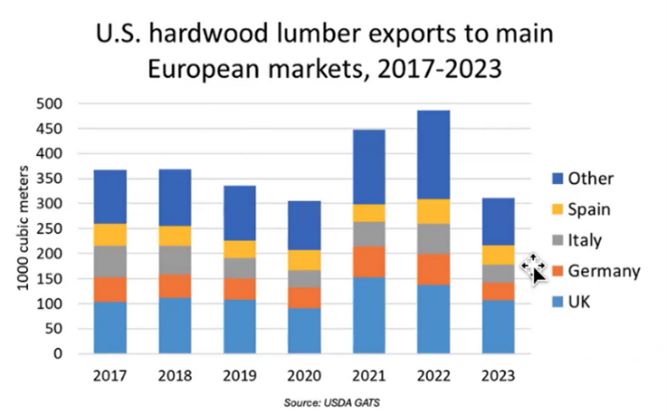 In Europa, la domanda di legno di latifoglia è cambiata significativamente negli ultimi anni. Paesi come il Regno Unito, la Germania, la Spagna e l’Italia continuano a dominare la classifica delle importazioni, con il Regno Unito che ha registrato un notevole incremento, nonostante le difficoltà economiche.